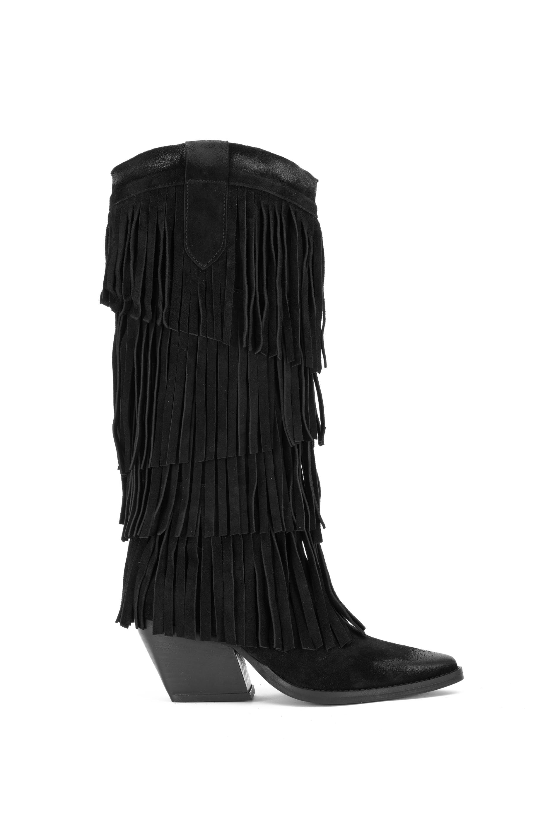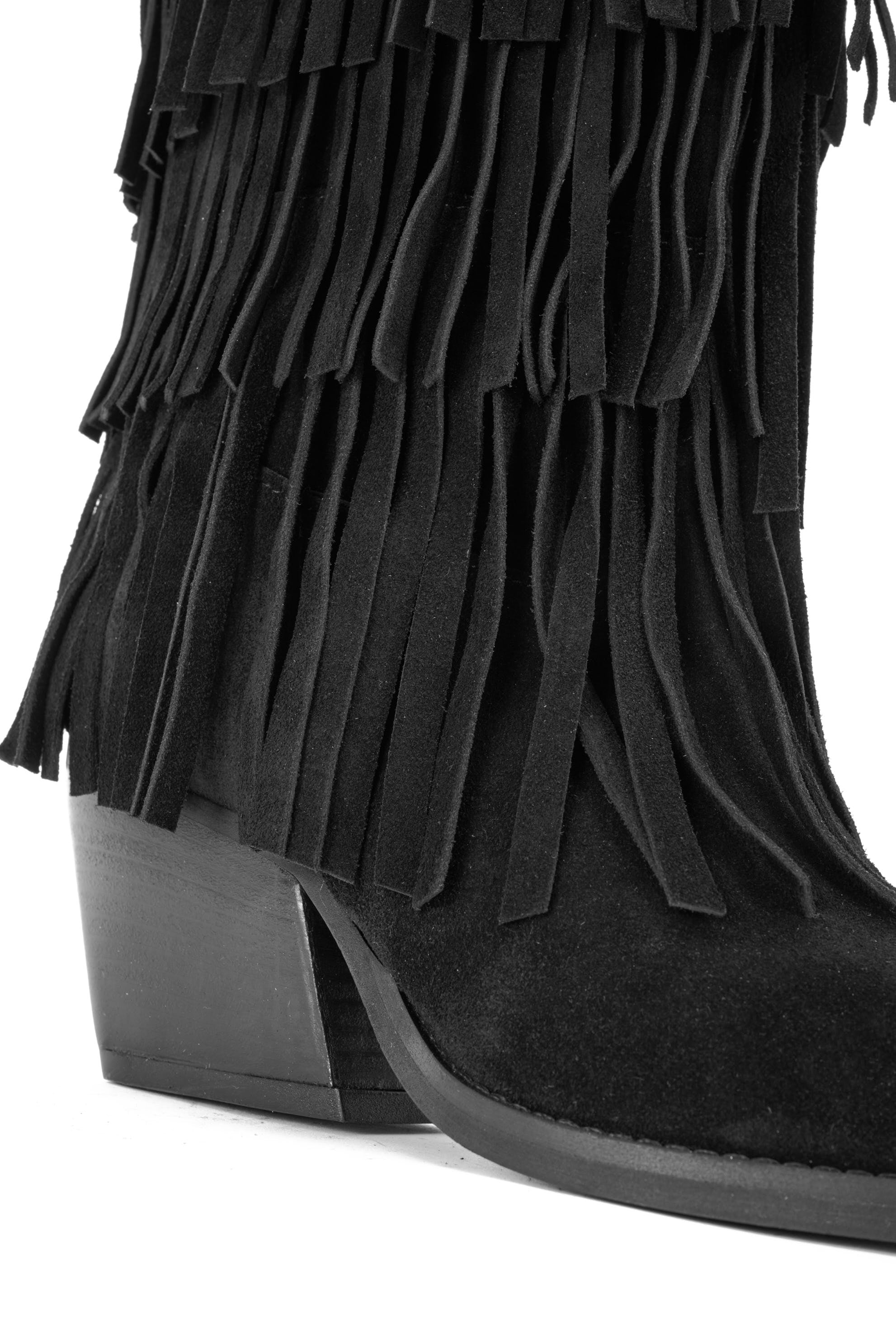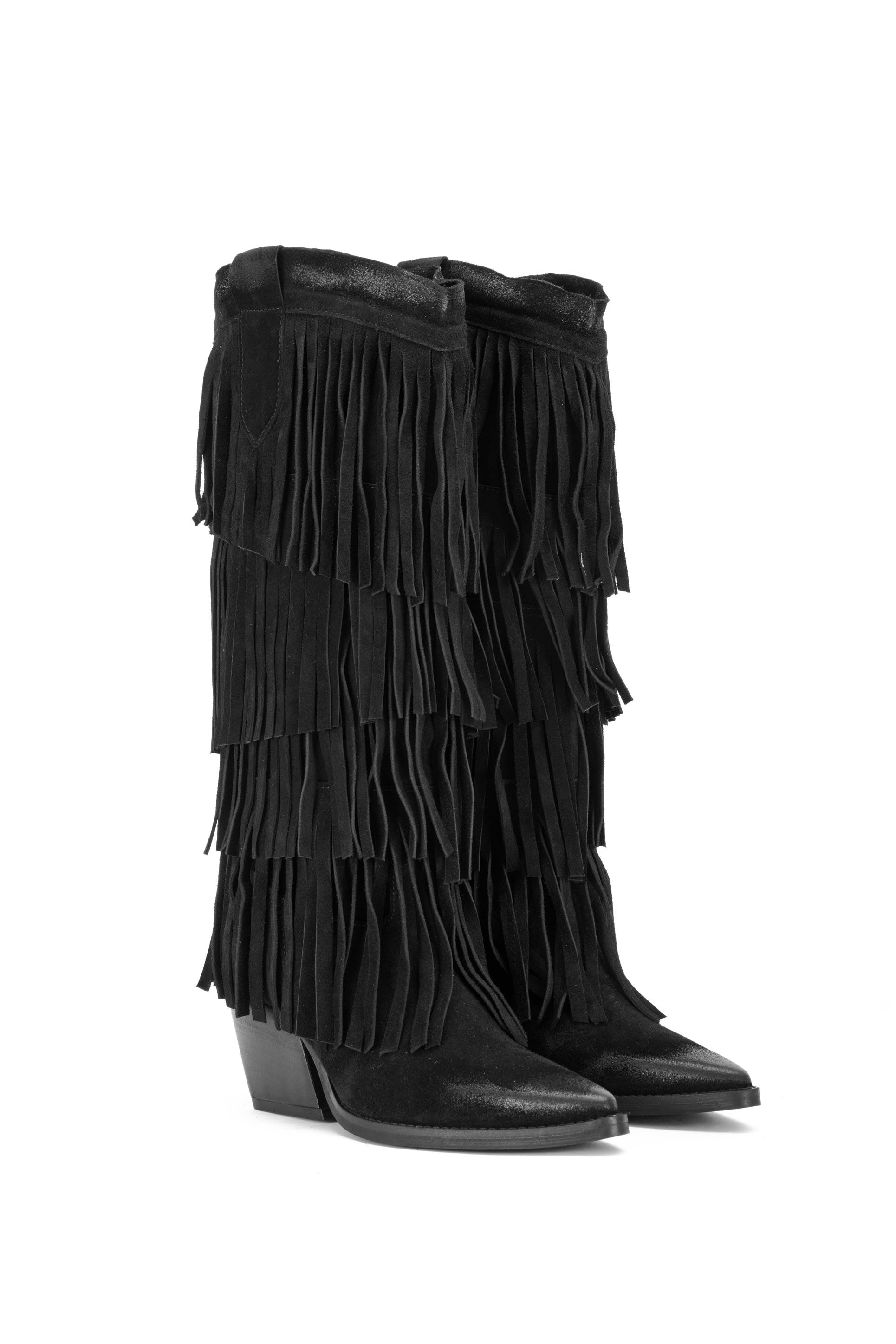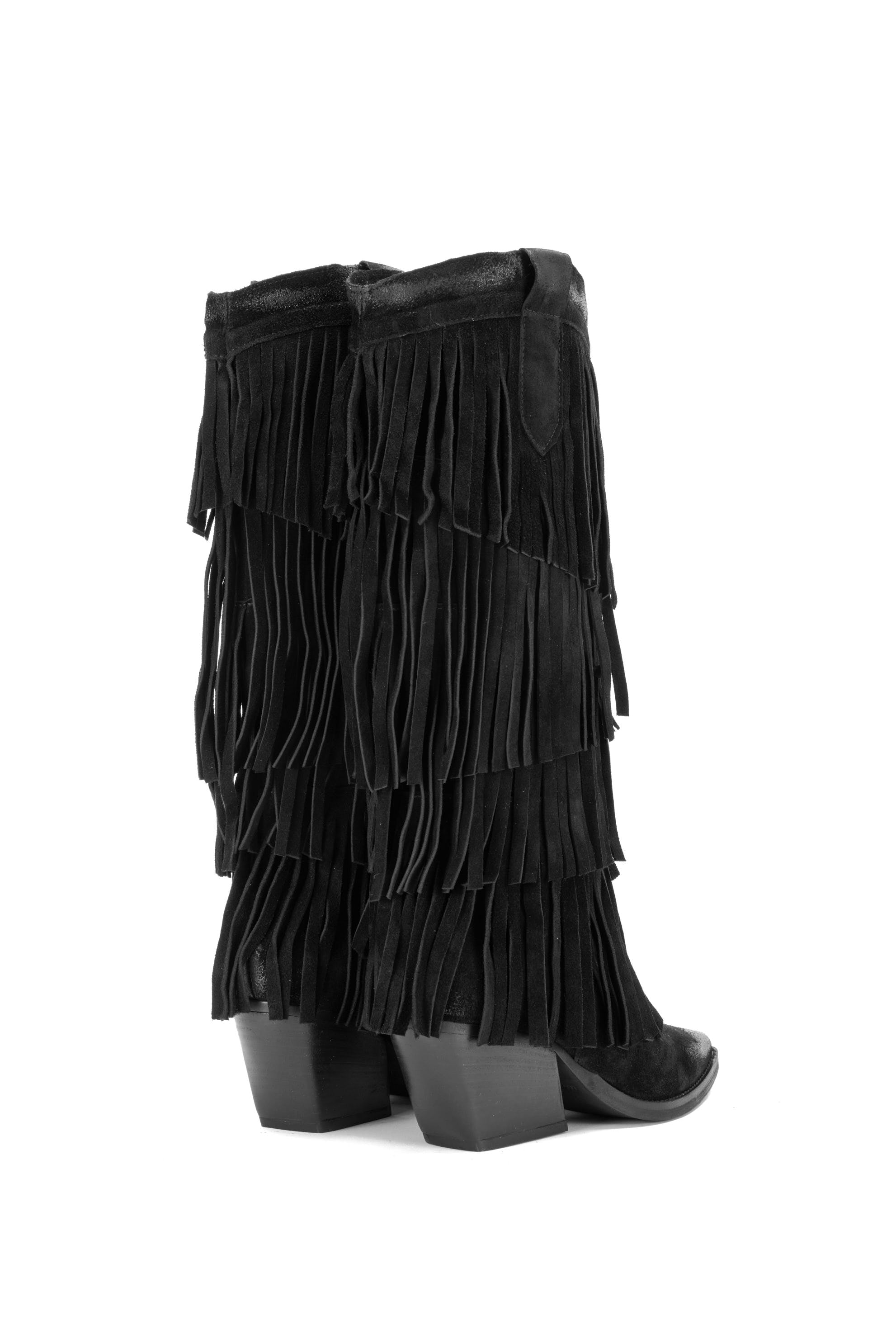 STIVALI TEXANI IN CAMOSCIO NERO CON FRANGE