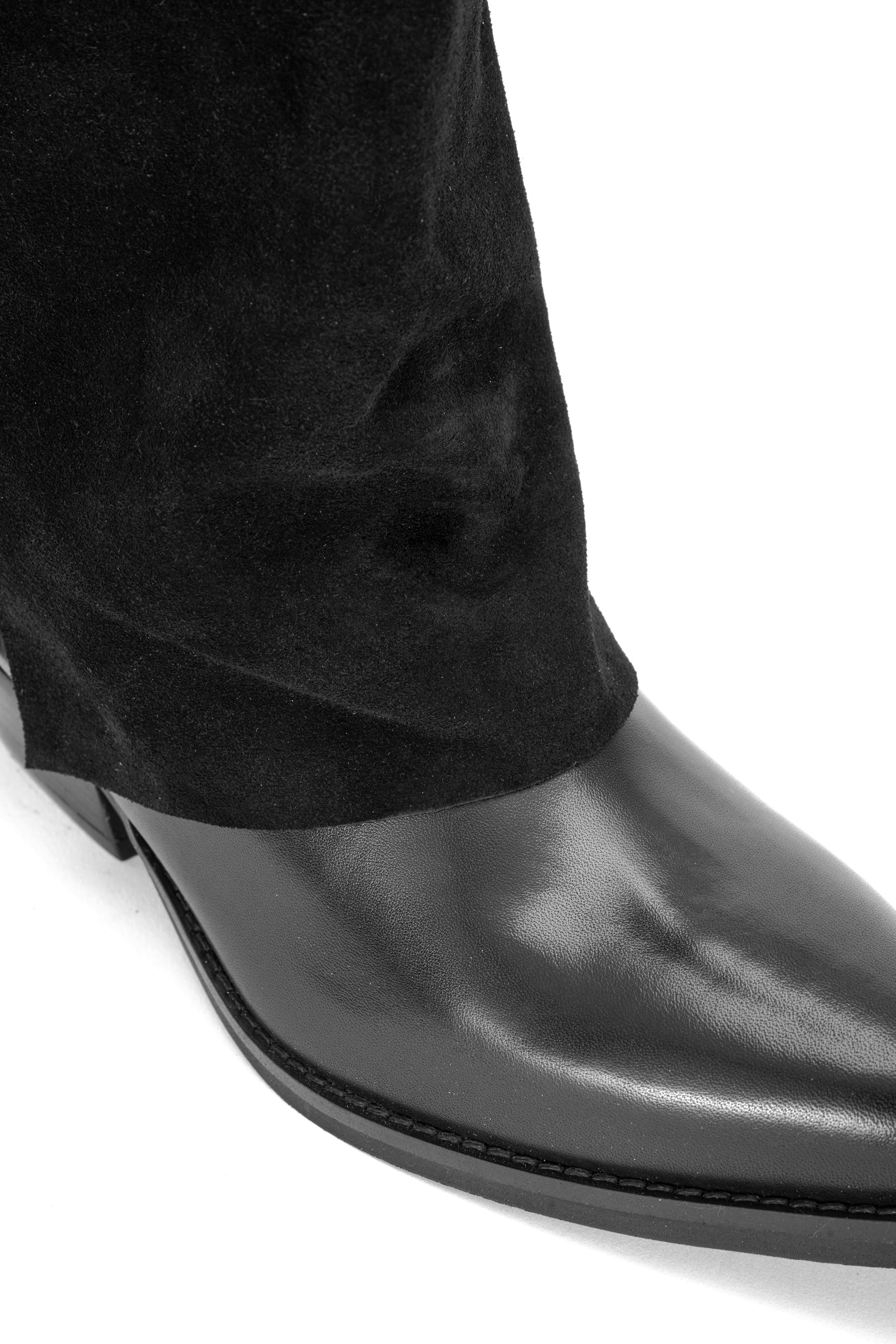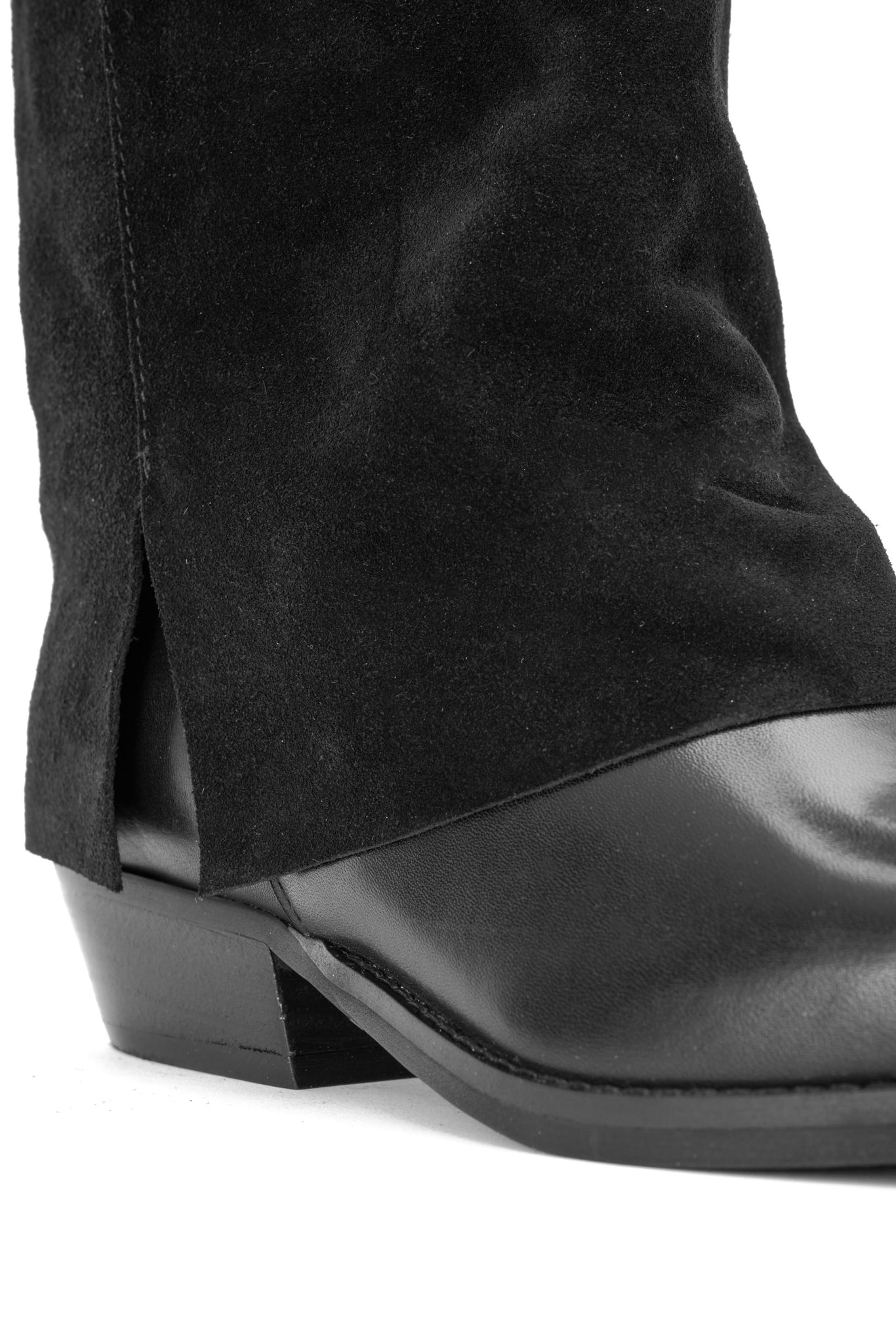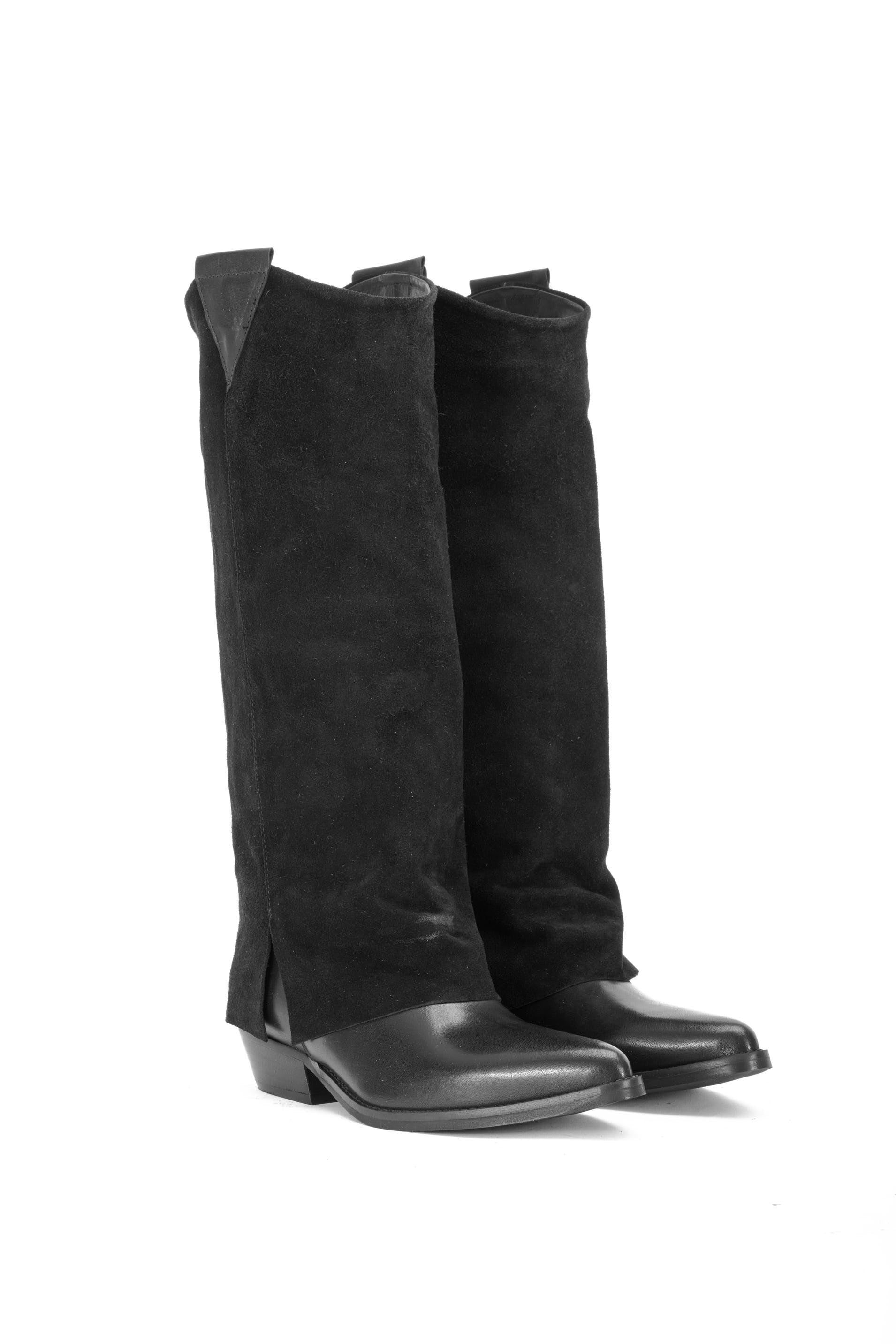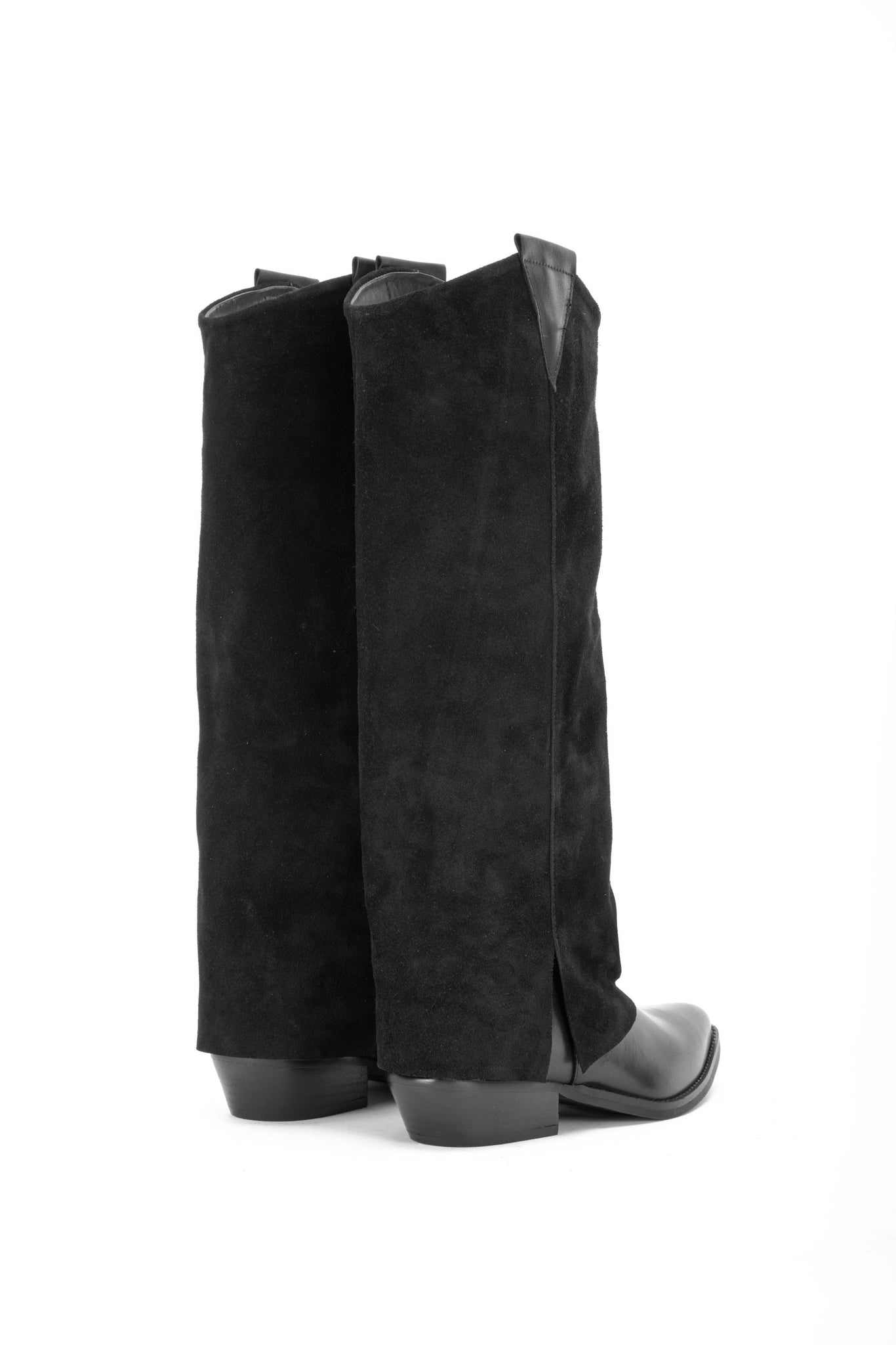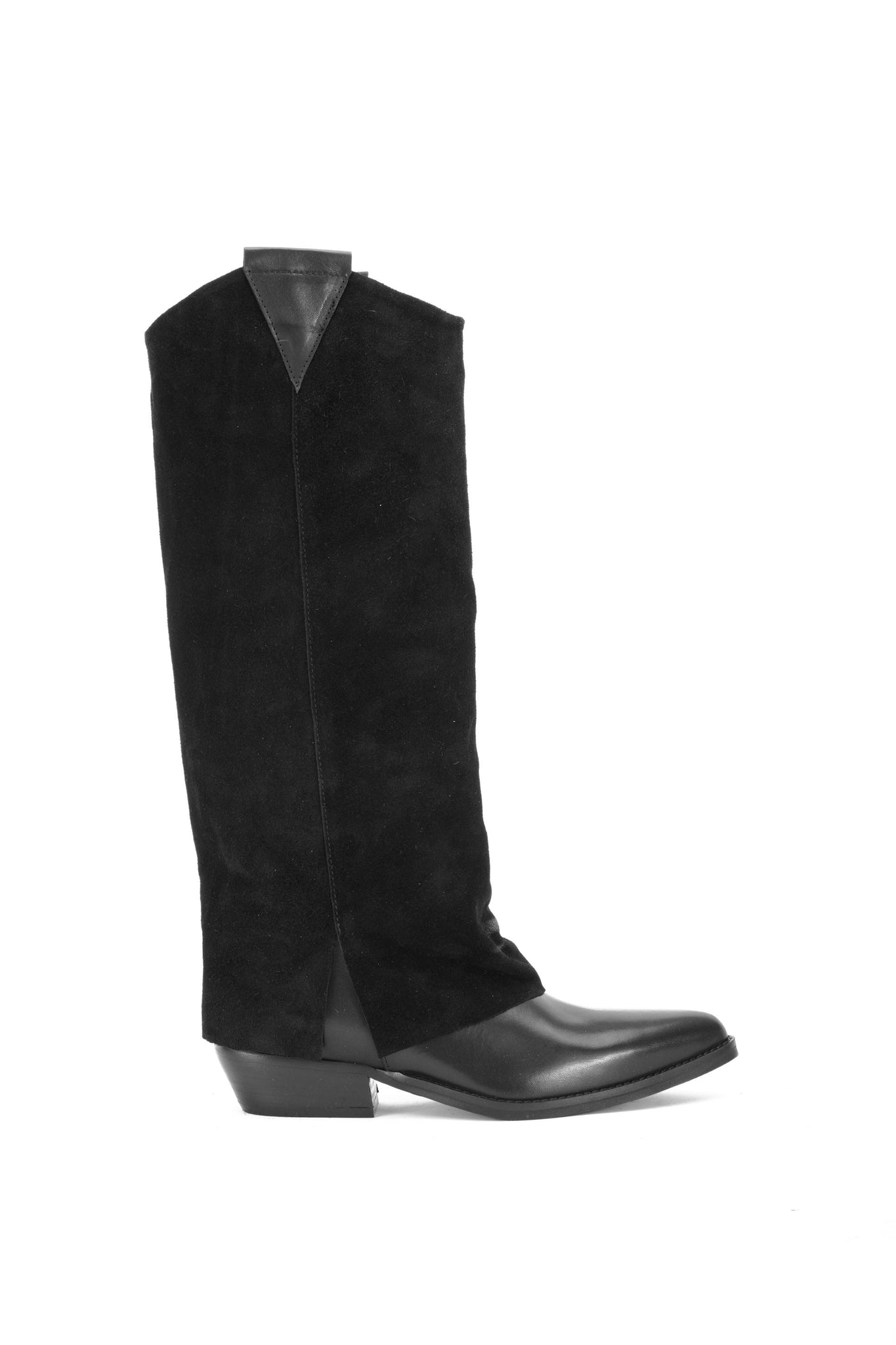 STIVALI TEXANI IN PELLE CON RISVOLTO IN CAMOSCIO