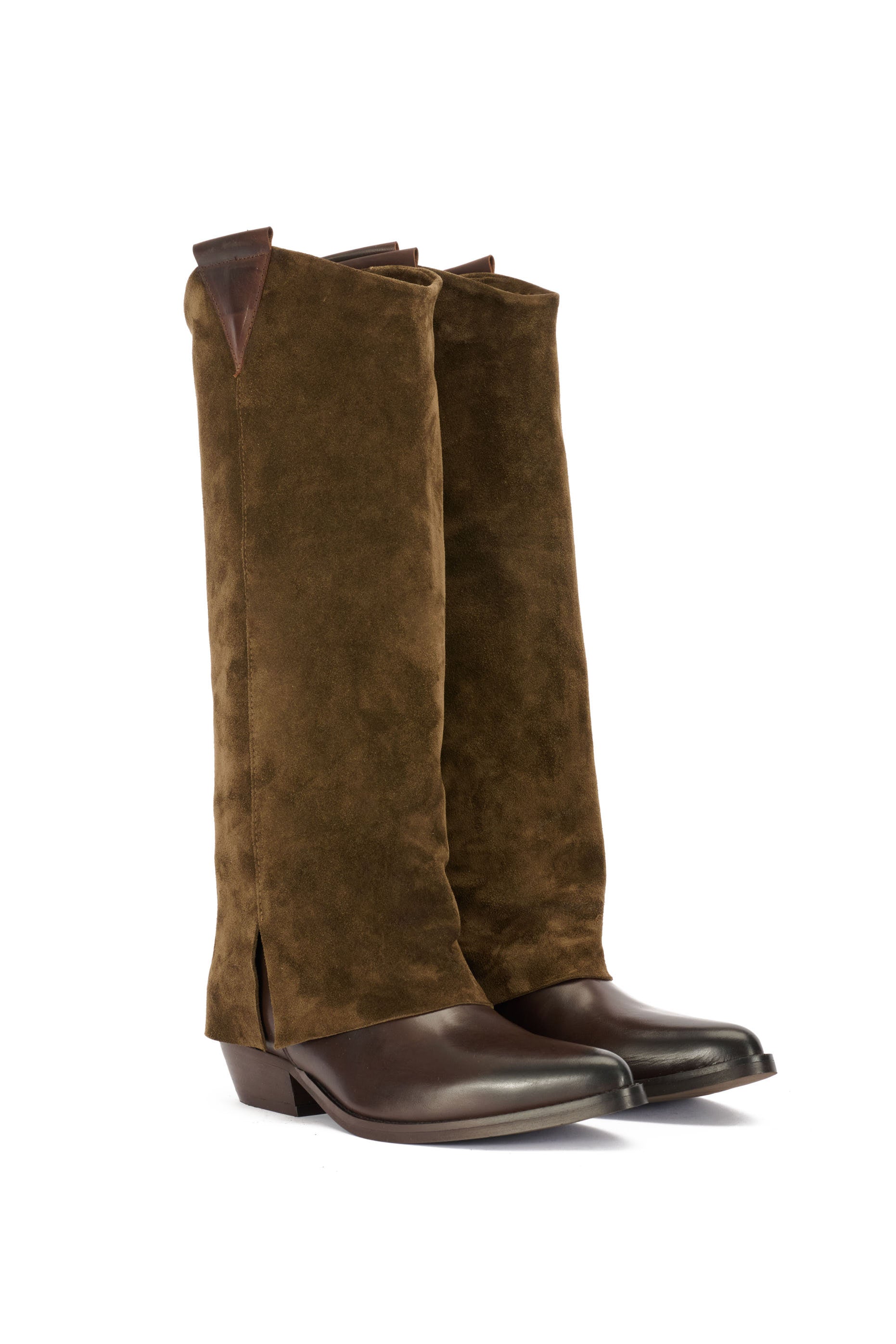 STIVALI TEXANI IN PELLE CON RISVOLTO IN CAMOSCIO